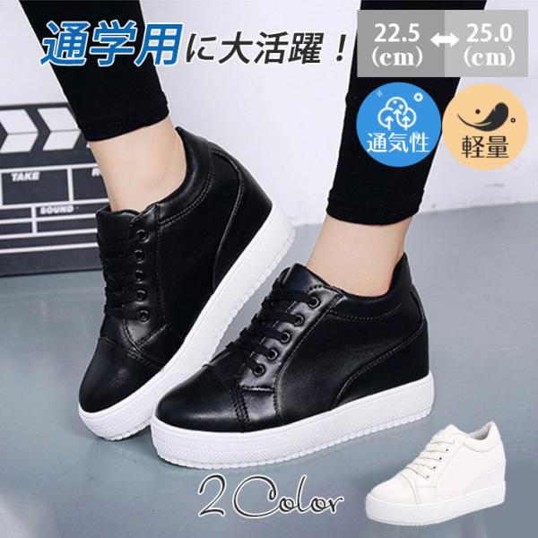 送料無料 スニーカー レディース 厚底スニーカー ロットカット インヒール 7cmUP レースアップシューズ 軽量 白 黒 大きいサイズあり 運動