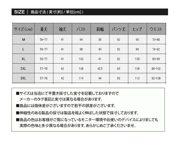 サイズ:/M/L/XL/2XL/3XL