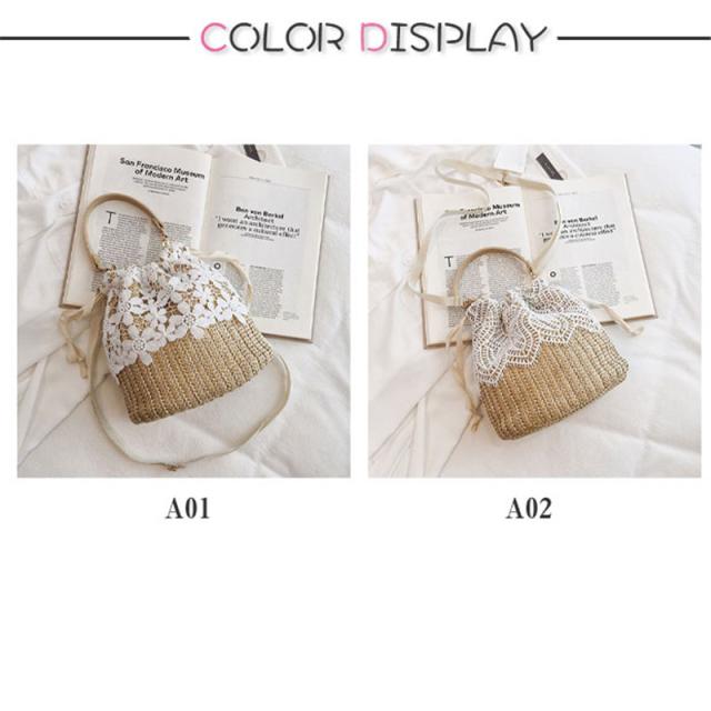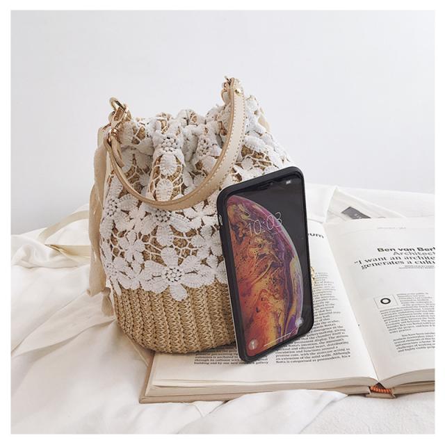 送料無料 かごバッグ レディース ショルダーバッグ 巾着型 レース 手提げ 斜めがけ 祭り 手提げバッグ ストローバッグ ハンドバッグ 花柄 送料無料