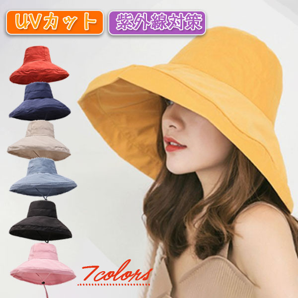 『2個以上購入で300円OFF帽子 レディース 紫外線カット帽子 つば広帽子 レディース 春 夏 秋 UVカット 日よけ あご紐付き 日焼け防止 折りたたみ アウトドア