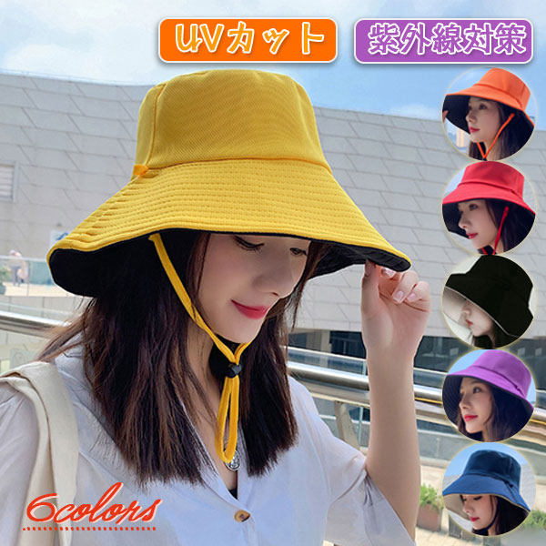 帽子 レディース 日よけ 紫外線対策 折りたたみ つば広 uv 熱中症 両面着 ハット ぼうし アウトドア 可愛い おしゃれ 農作業 あご紐つき