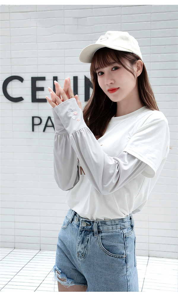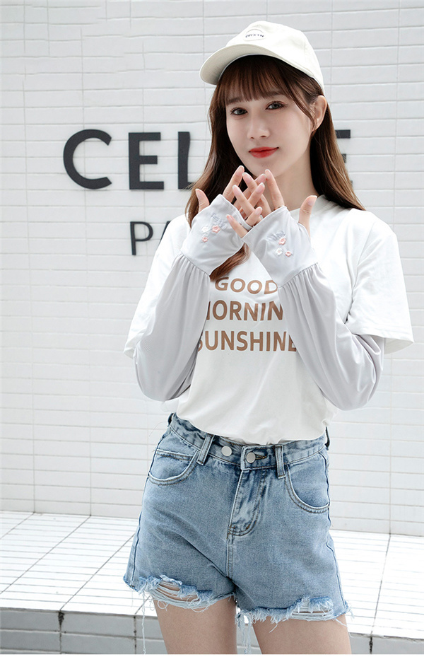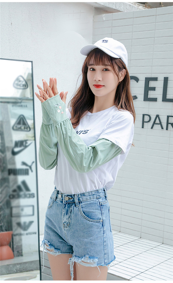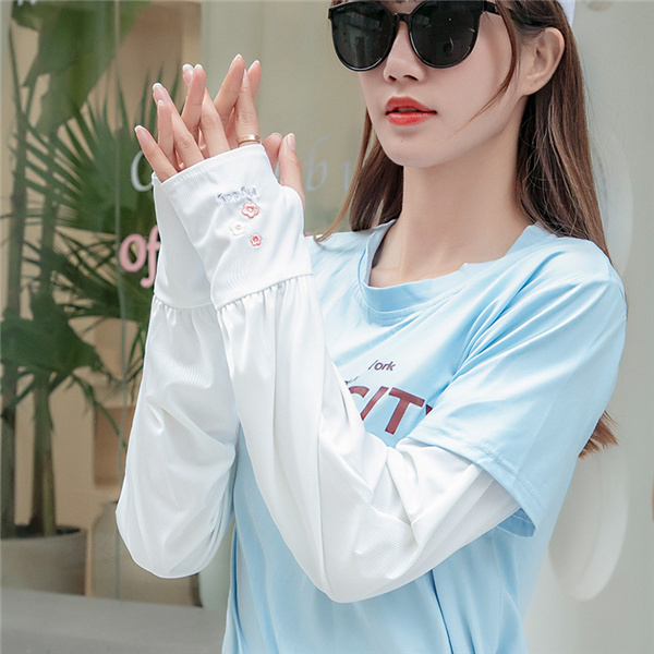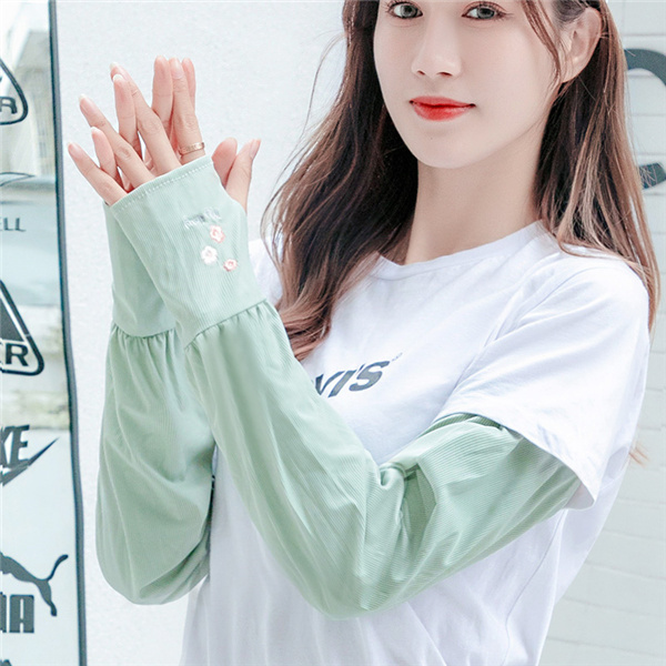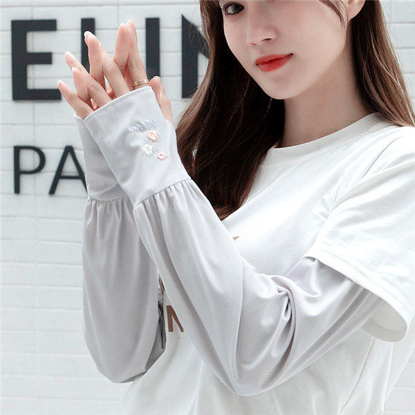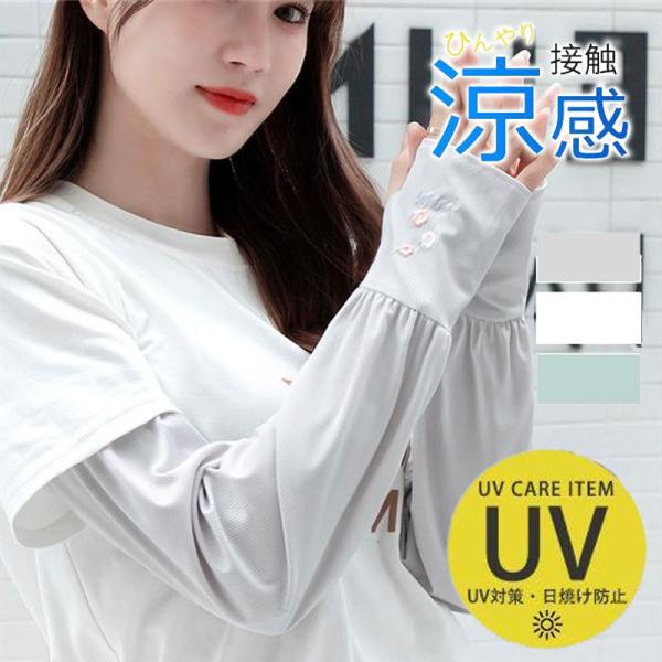 【2点購入で1点799円!クーポン利用で!!】アームカバー レディース 刺繍 無地 花柄 指穴タイプ 腕カバー 自転車 UVカット 日焼け防止 おしゃれ アウトドア