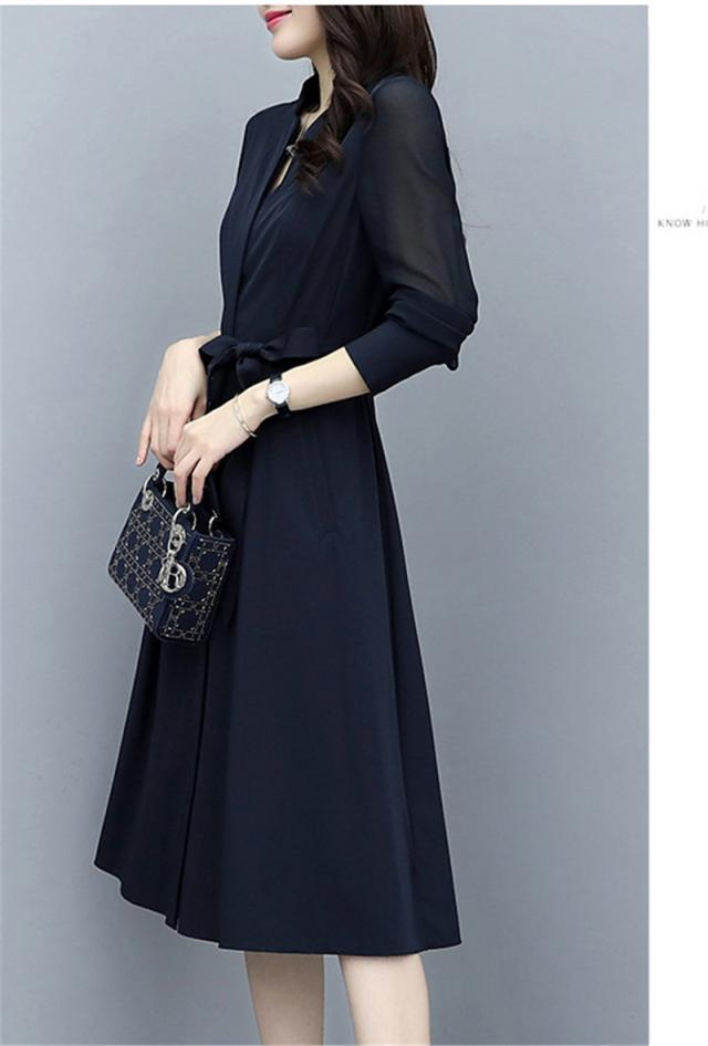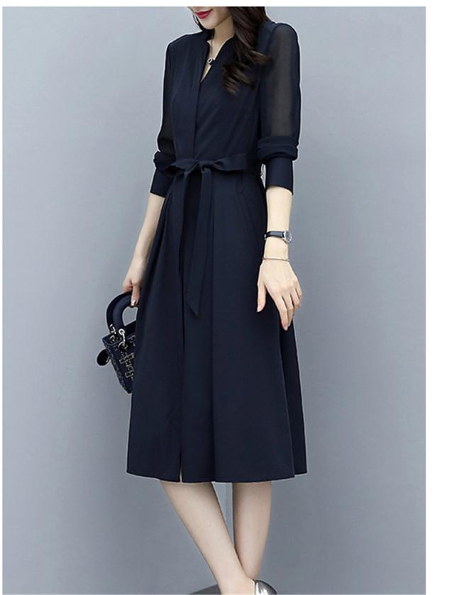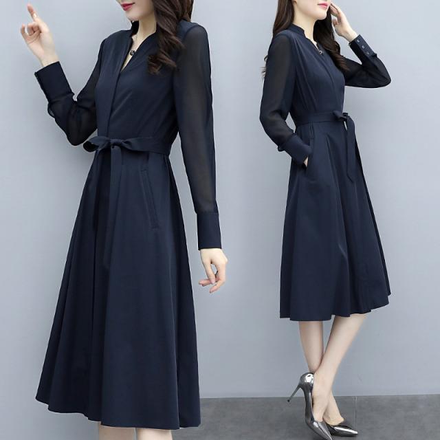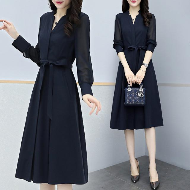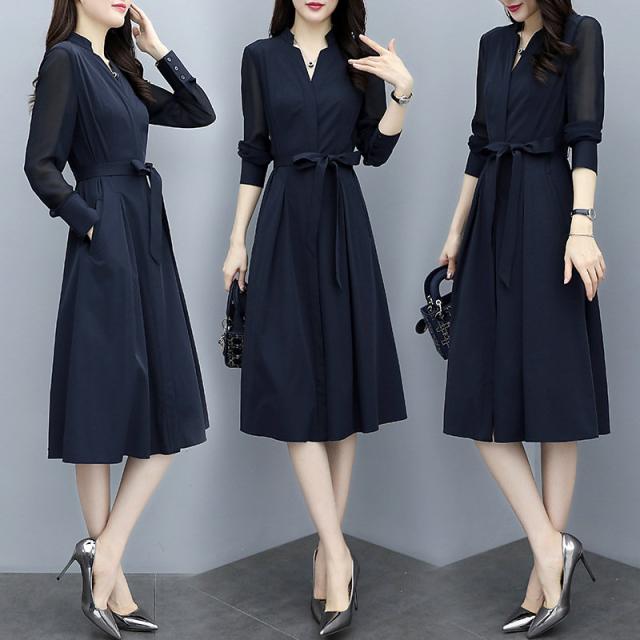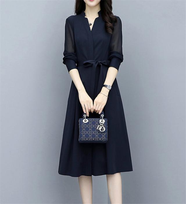 ロングワンピース 春 秋 レディース ワンピース 春コーデ 着痩せ ミモレ丈 きれいめ 無地 Vネック 上品 大人 通勤 OL 二次会 エレガント