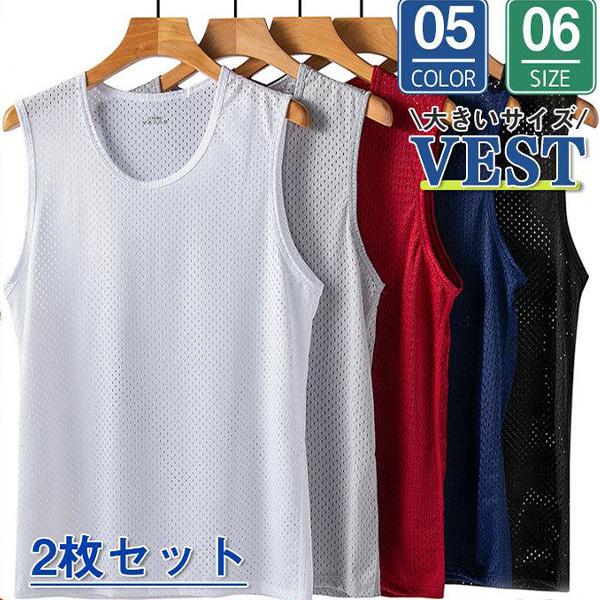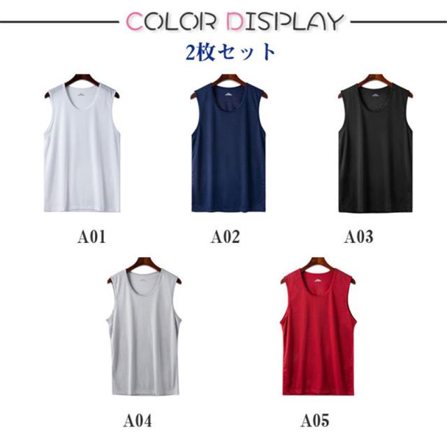 【2枚組】タンクトップ メンズ インナー ランニング メッシュ 冷感ノースリーブ 夏 無地 涼しい インナー 下着 肌触り スポーツウェア 冷感素材