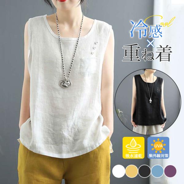 タンクトップ レディース 夏 春 レイヤード Uネック インナー リネン風 ノースリーブ トップス おしゃれ ゆったり シンプル 大きいサイズ