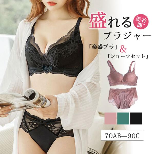 ブラジャー ショーツセット 超盛りブラ 補正ブラジャー 盛りブラ ノンワイヤー ブラショーツ 盛りブラジャー 丸胸 盛れる 谷間 おしゃれ 送料無料
