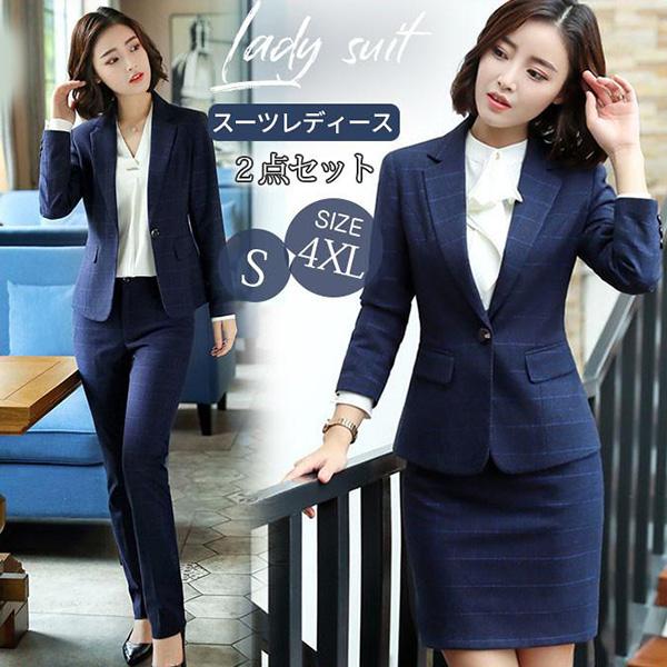 スーツセット レディース パンツセットチェック柄 スカートセット 20代 事務服 フォーマル 細身シルエット 制服OL ビジネス 入学式 卒業式 通勤