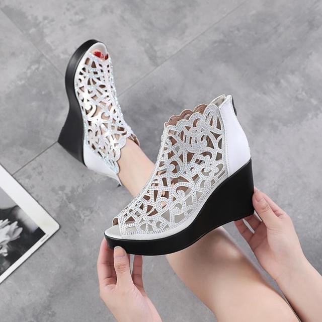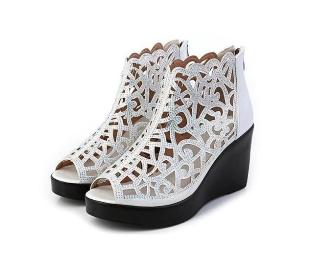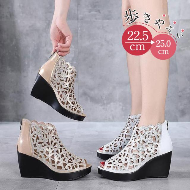 サマーブーツ サンダル レディース 夏 秋 美脚 太ヒール ウェッジソール ショート丈 透かし カジュアル 厚底 疲れない おしゃれ 大人 新作