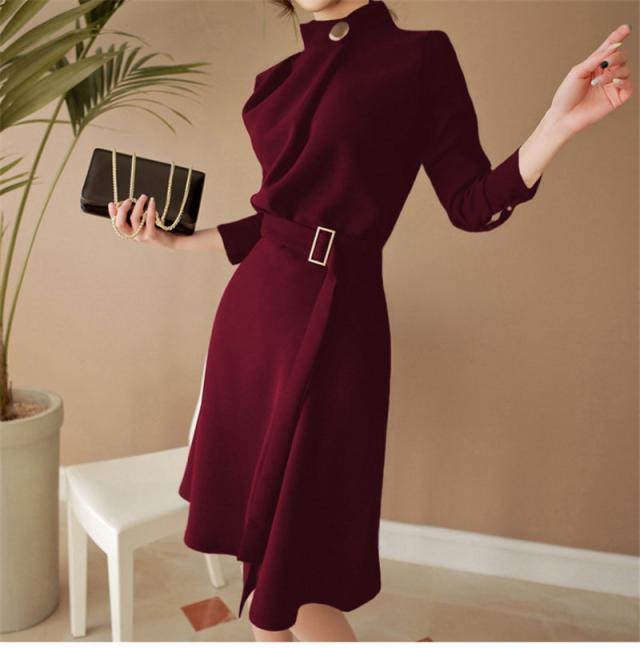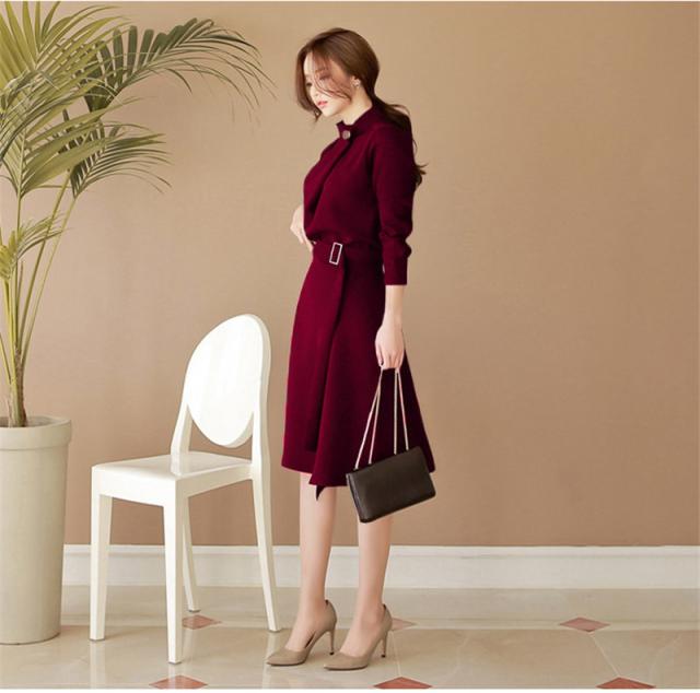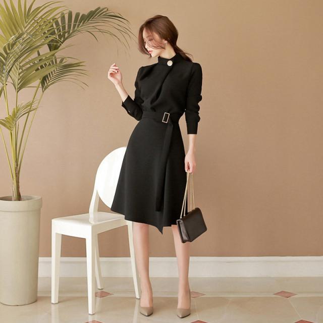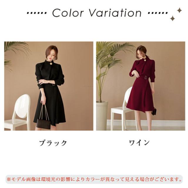ワンピース 入学式 卒業式 卒園式 成人式 通勤 長袖 立ち襟 おしゃれ レディース ゴールドボタン パーティードレス 結婚式 二次会 披露宴 発表会