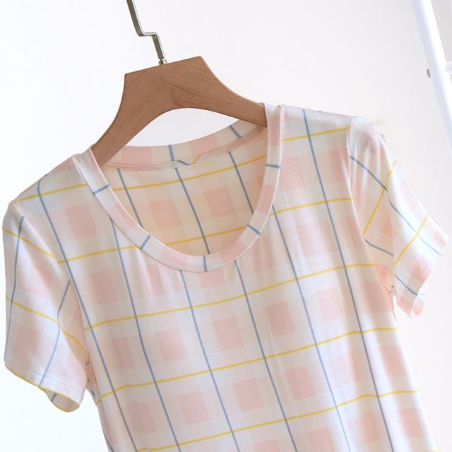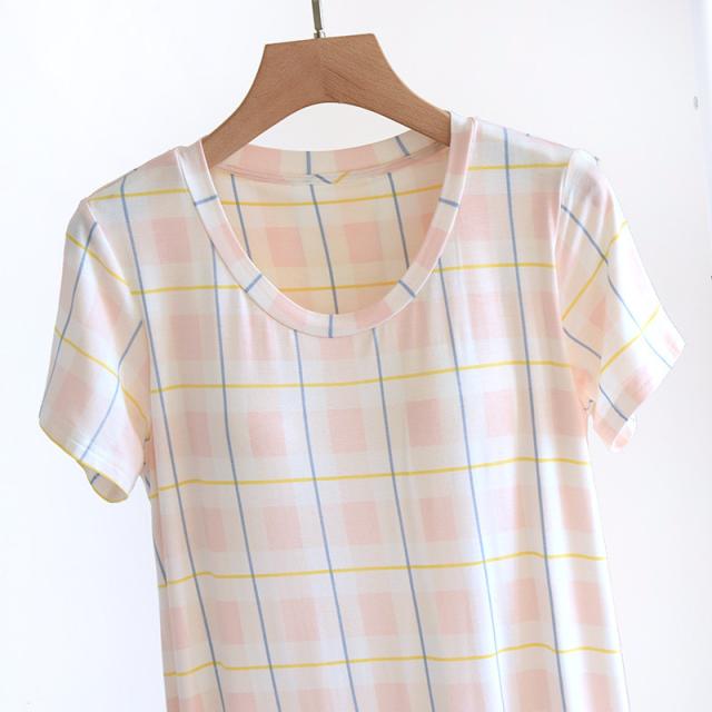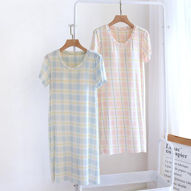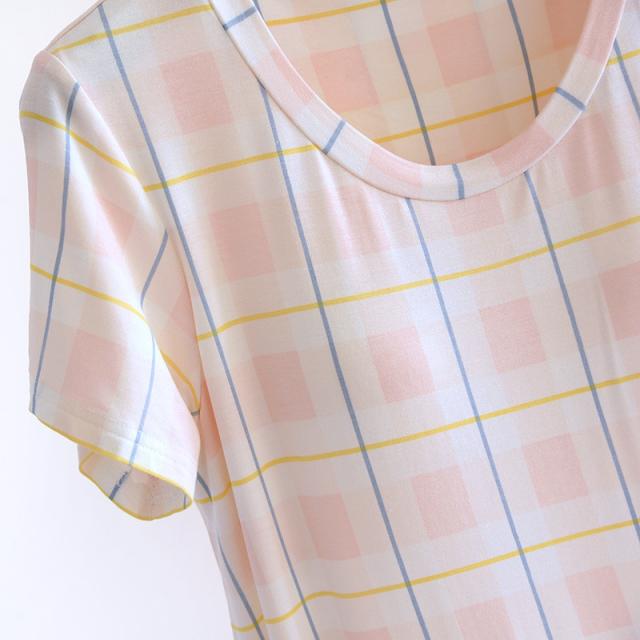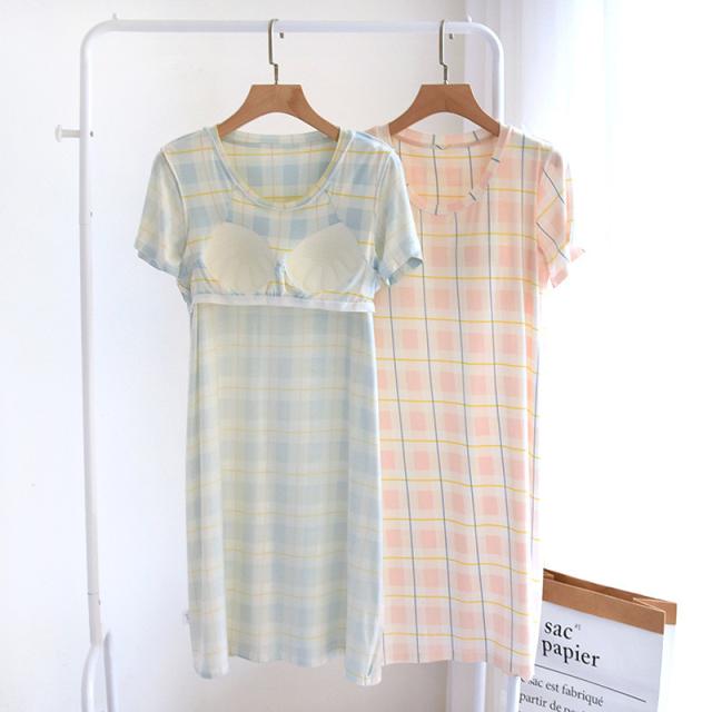 パジャマ レディース ルームウェア 半袖 カップ付き チェック柄 マタニティ 寝巻き 春夏 ワンピース 寝間着 部屋着 ゆったり 体型カバー おしゃれ