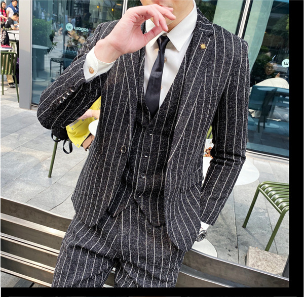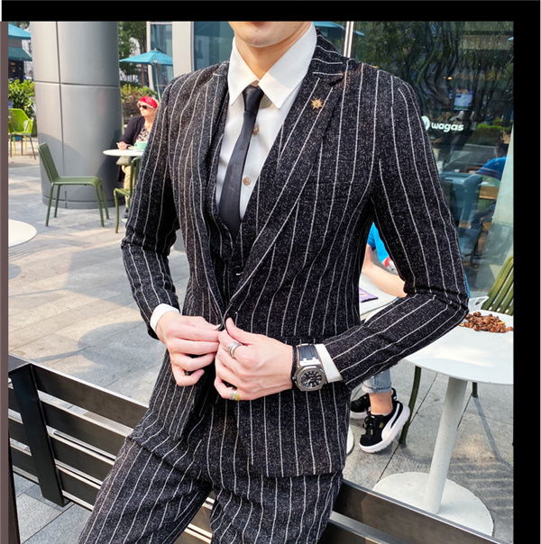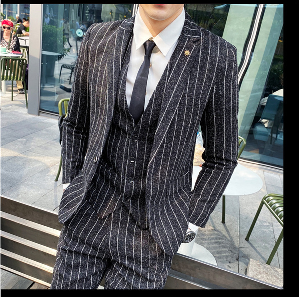 スリーピーススーツ メンズ スーツ 紳士服 ボーダー柄 スーツセット 卒業式 就職 結婚式 細身 お洒落 仕事スーツ オフィススタイル カジュアル