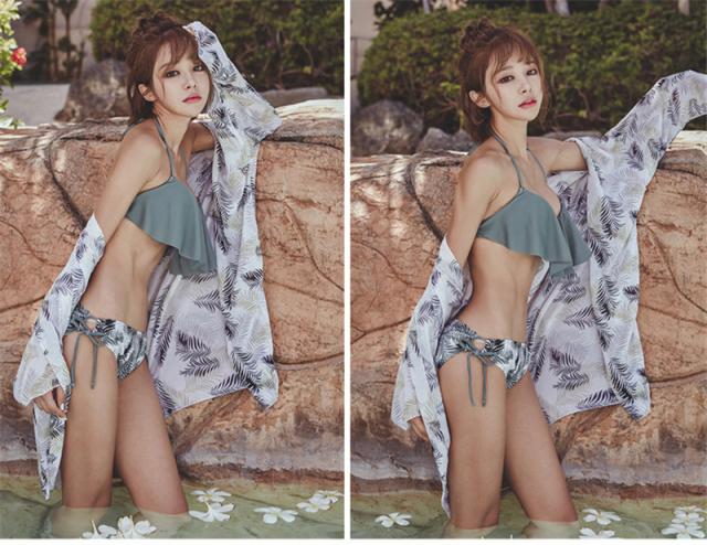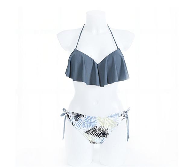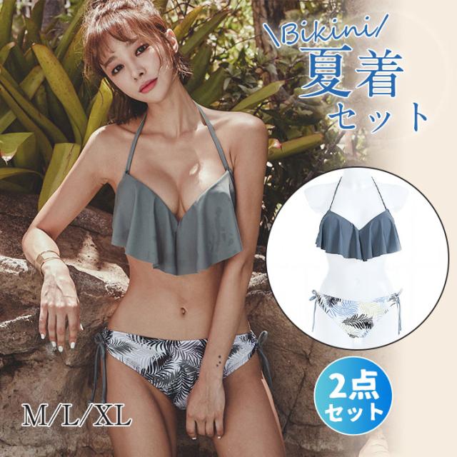 水着 レディース ビキニ 水着セット フリル ヤシ柄 スイムウェア ショットパンツ セクシー ホルターネック セパレート 韓国風 温泉着 ビーチ