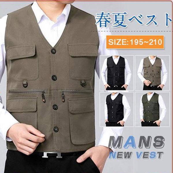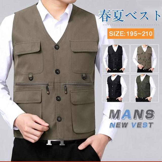 一部当日発送!ベスト メンズ ポケット多い 多機能ベスト 作業服 父の日 チョッキ フォーマル トップス Vネック 収納 旅行 遠足 春夏 前開き アウトドアベスト