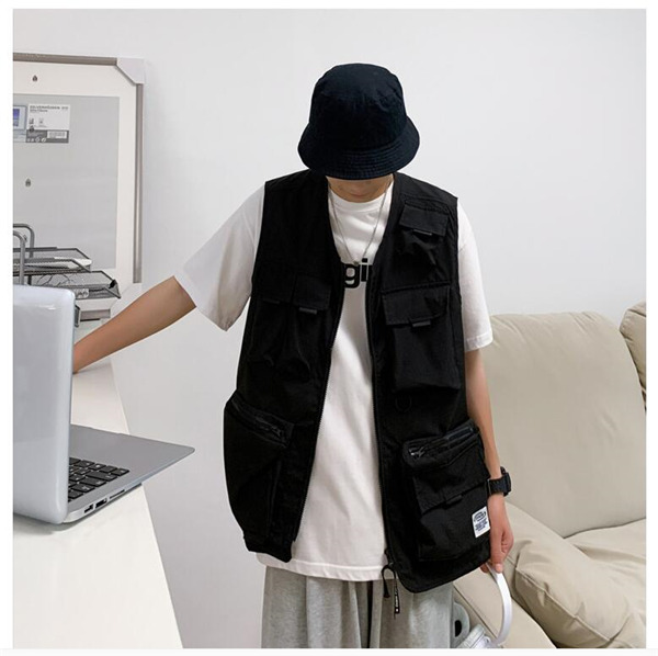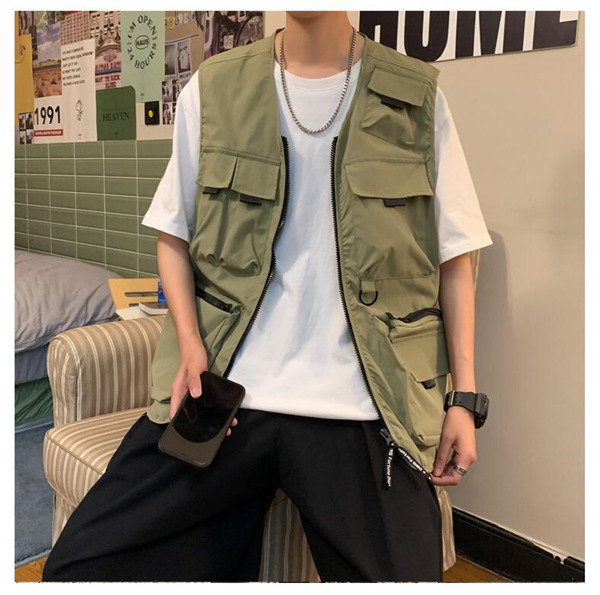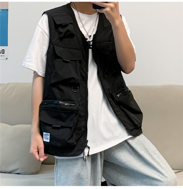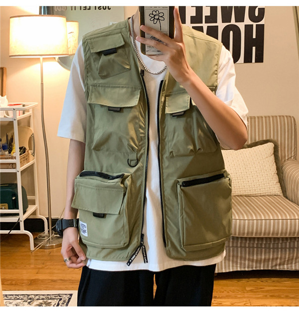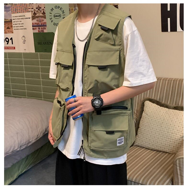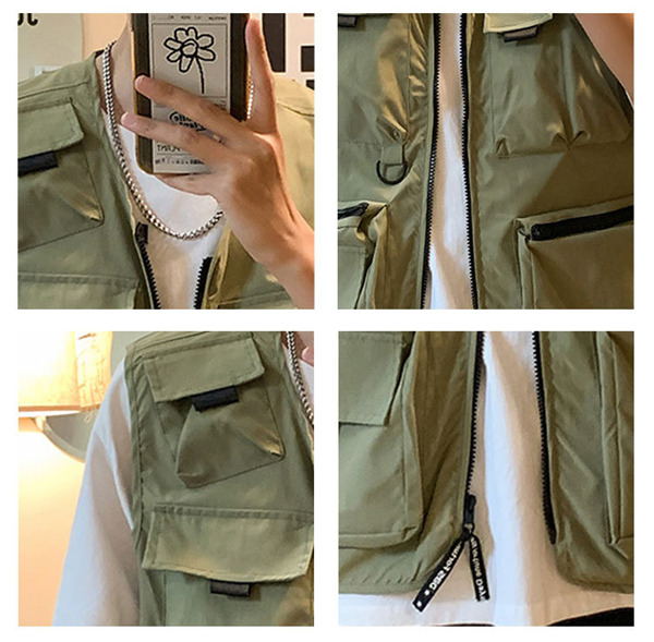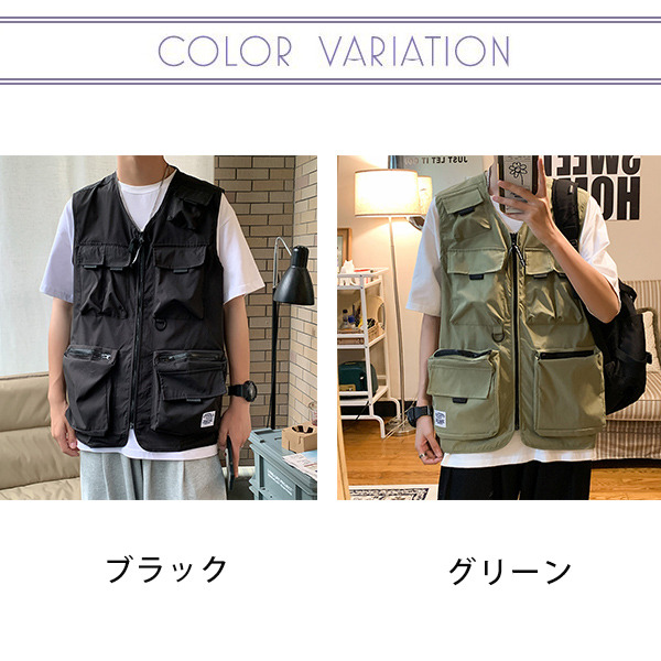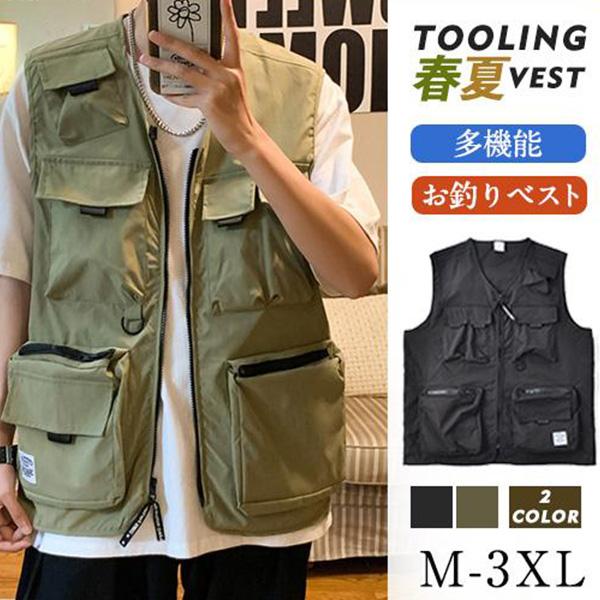 ベスト メンズ ワークベスト Vネック ポケット付き ファスナー 作業服 お釣り 登山 ミリタリー アウター ゆったり カジュアル おしゃれ 夏
