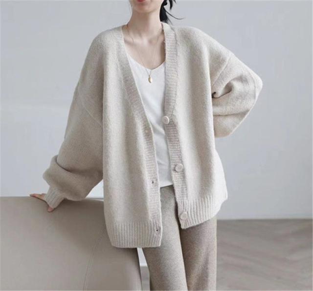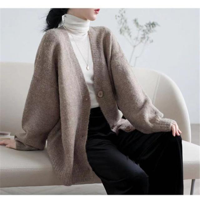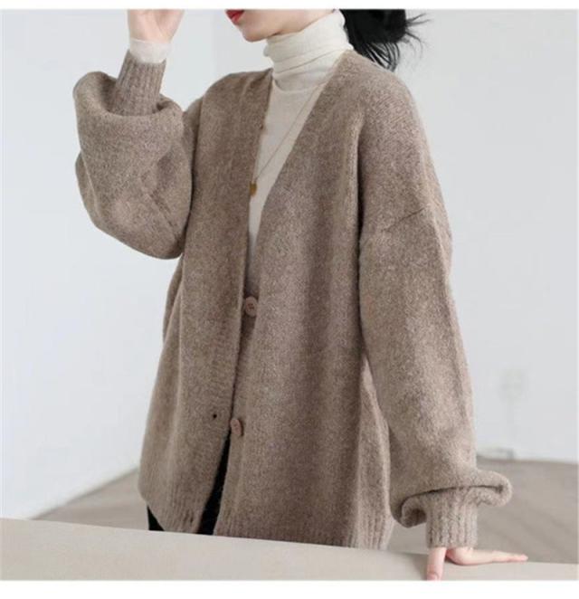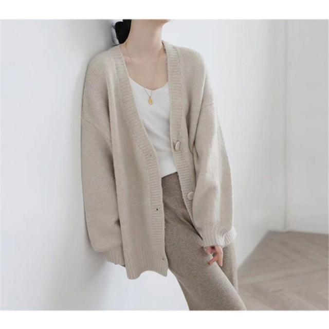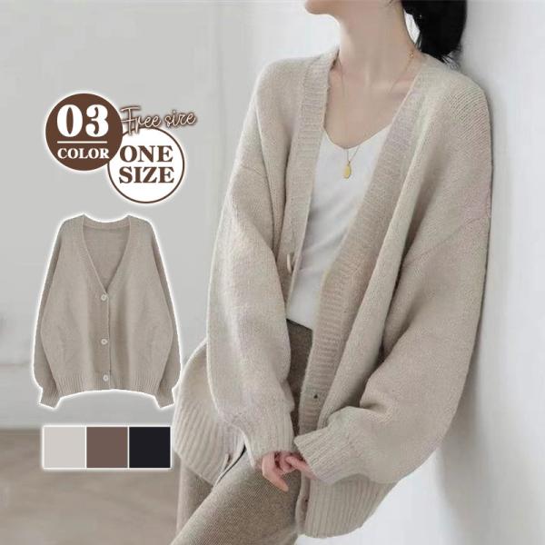 カーディガン ニット レディース 春 秋冬 オフィス ニットカーディガン 厚手 長袖 vネック 前開き 大きいサイズ オーバーサイズ ナチュラル