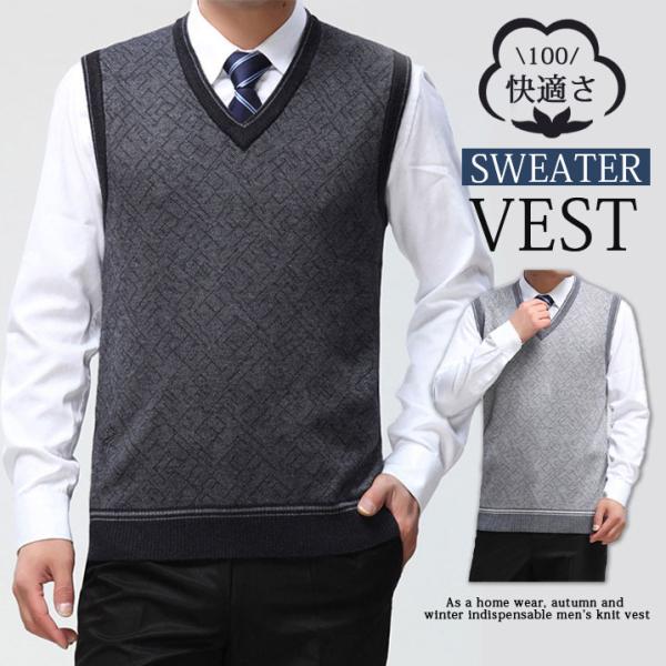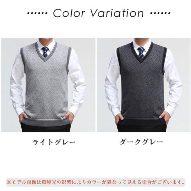ニットベスト ノースリーブ ニットセーター ベスト ウール メンズ Vネック セーター 無地 トップス 大人 カジュアル 紳士 部屋着 送料無料