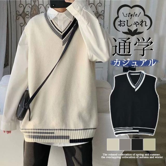ベスト ニットベスト Vネック セーター ベストセーター カップル レディース メンズ 男女兼用 防寒 秋冬 保温 シンプル 上品 重ね着 リブ