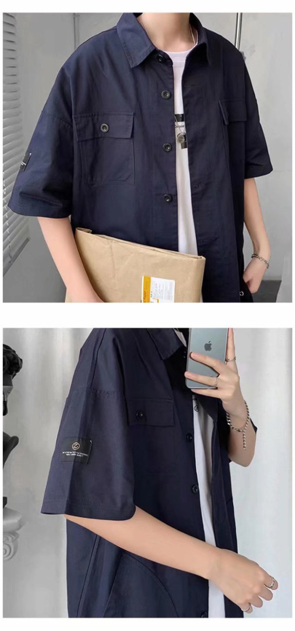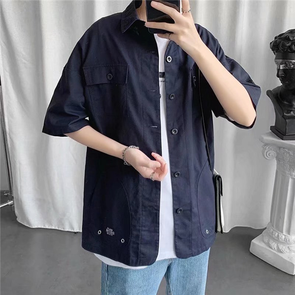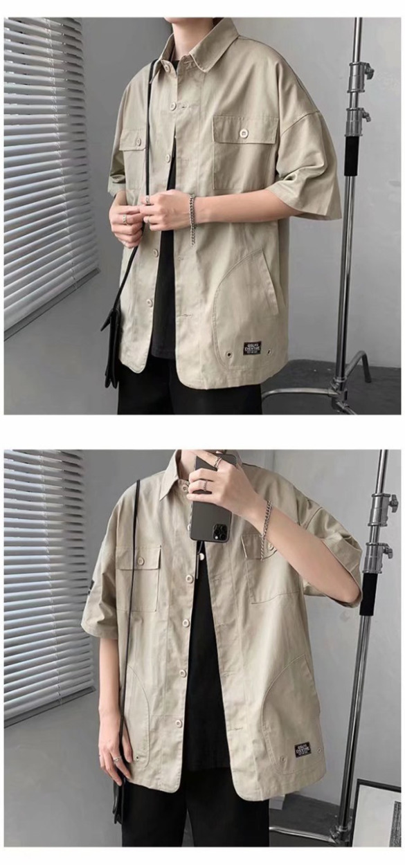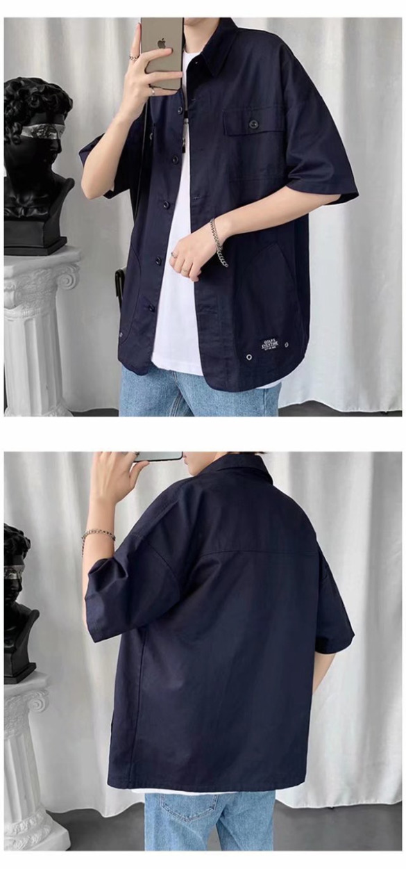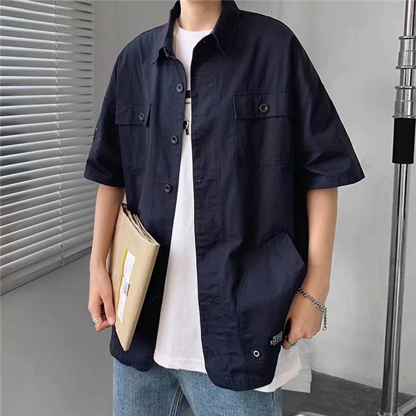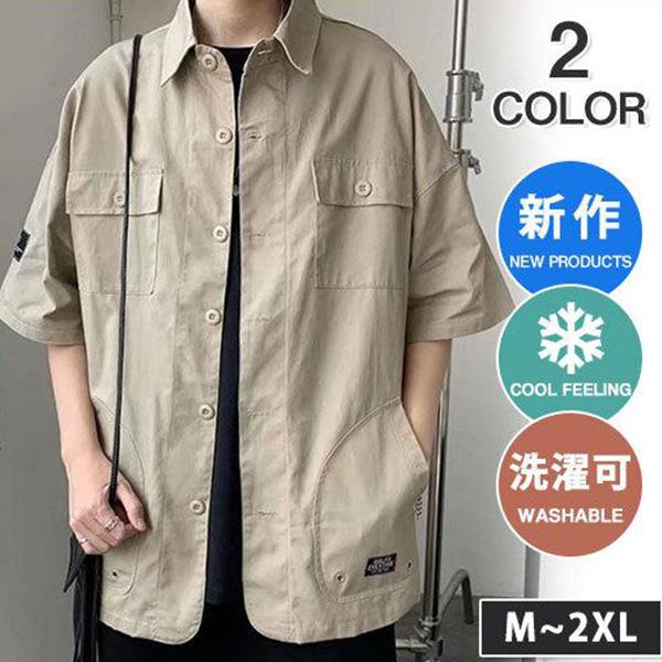 シャツ メンズ 半袖シャツ トップス 開襟シャツ ポケット カジュアル 夏服 お兄系 送料無料 お洒落 紳士服 スリム 通勤 通学 父の日 20代