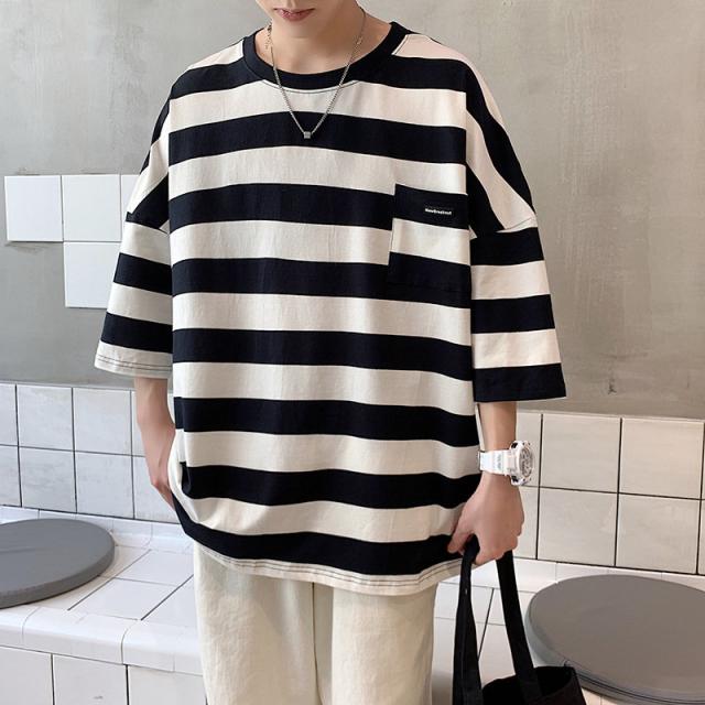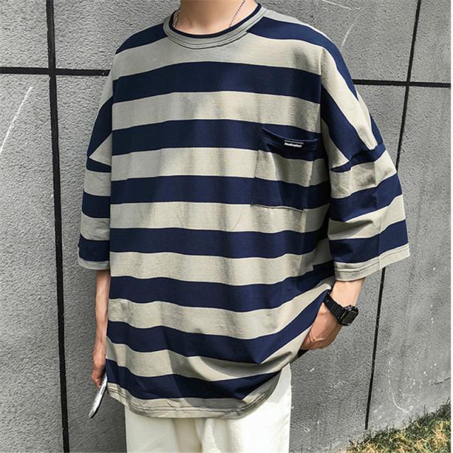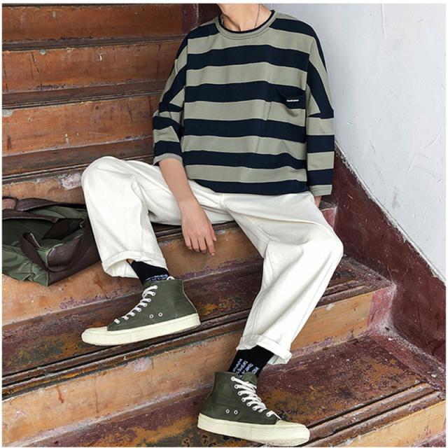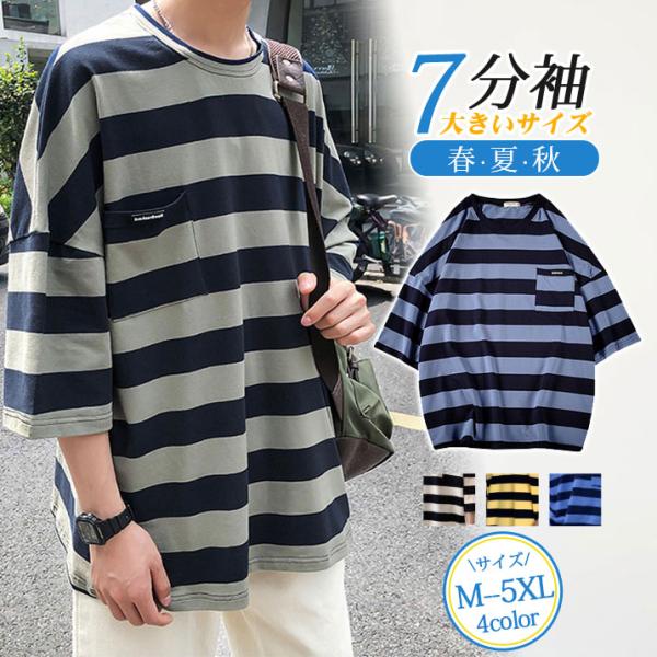 7分袖 Tシャツ 大きいサイズ メンズ ボーダー柄 おしゃれ 通学 七分丈tシャツ アメカジ 無地 カジュアル トップス 夏服 新生活 春夏秋 父の日