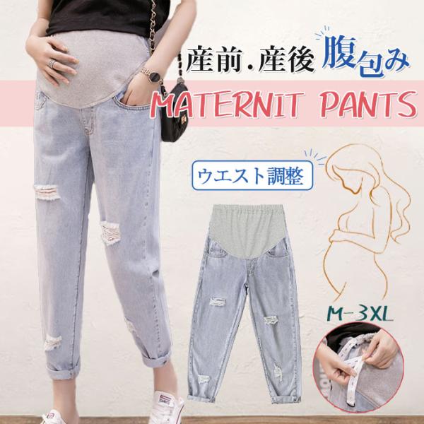 マタニティ デニム レギパン レギンス パンツ スキニー 産前産後 ウエスト調整 妊婦服 ダメージ ワイド ストレッチ ズボン ボトムス 送料無料