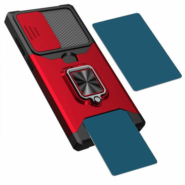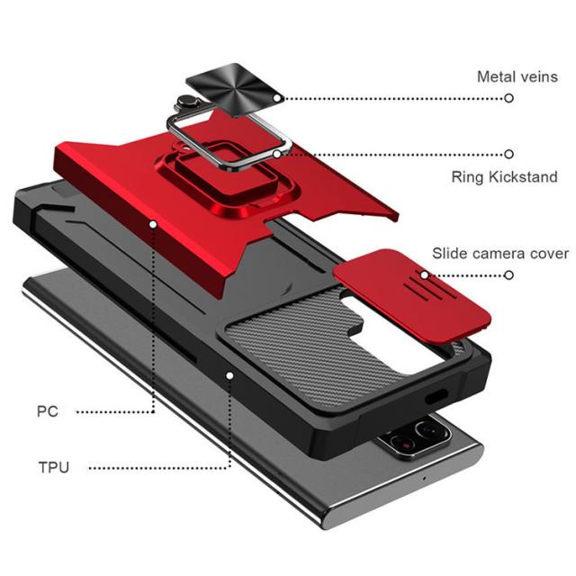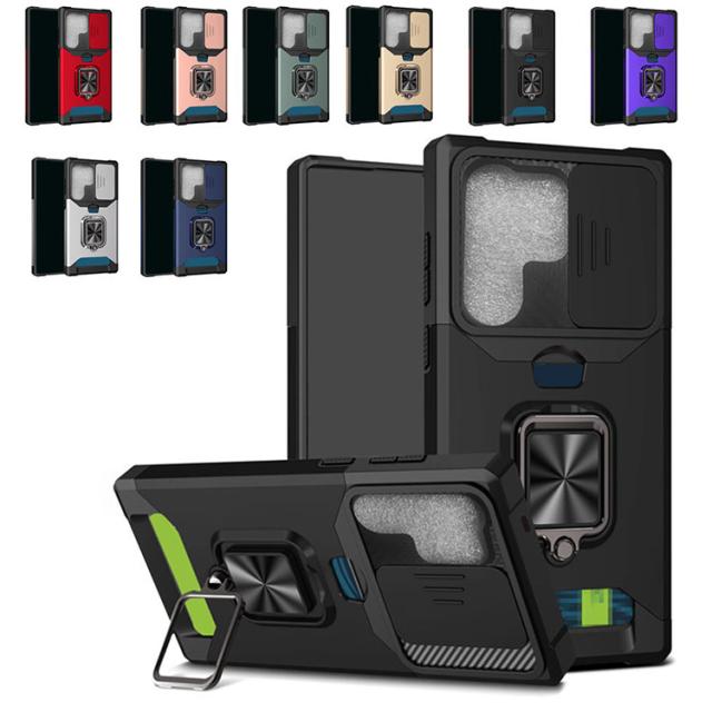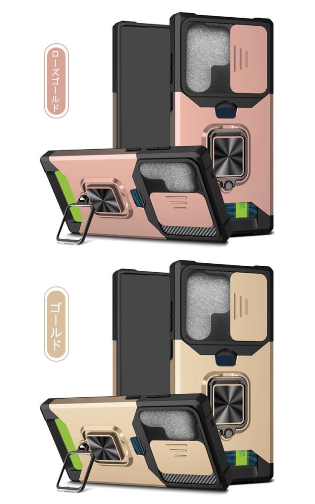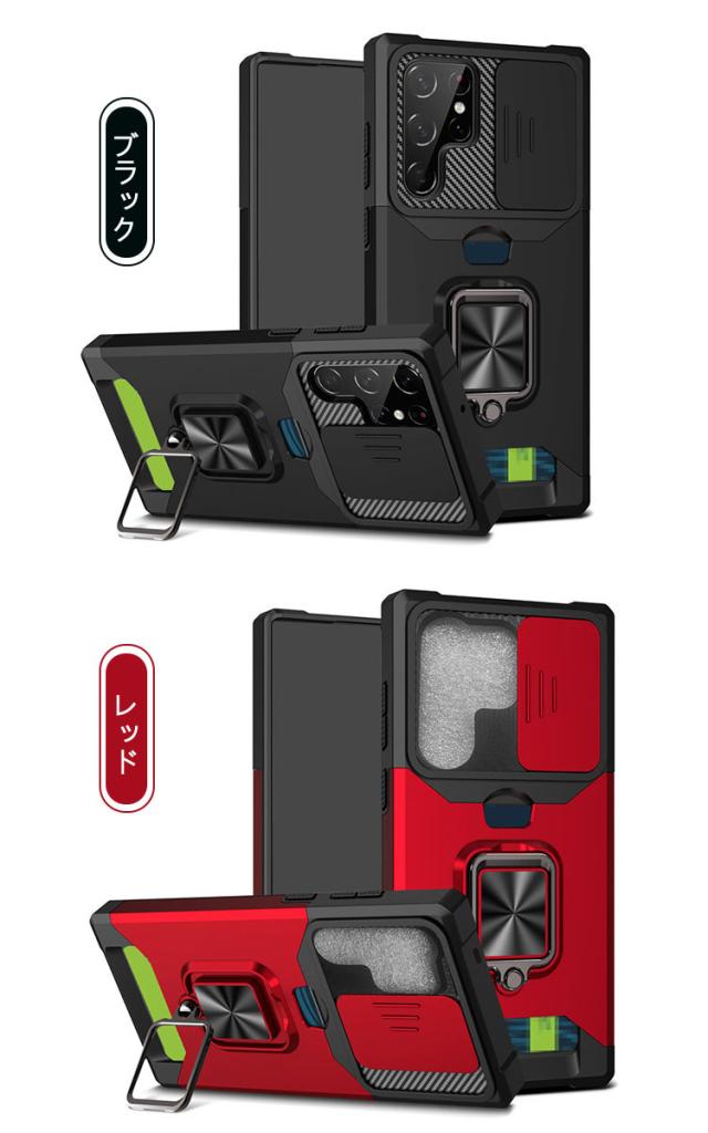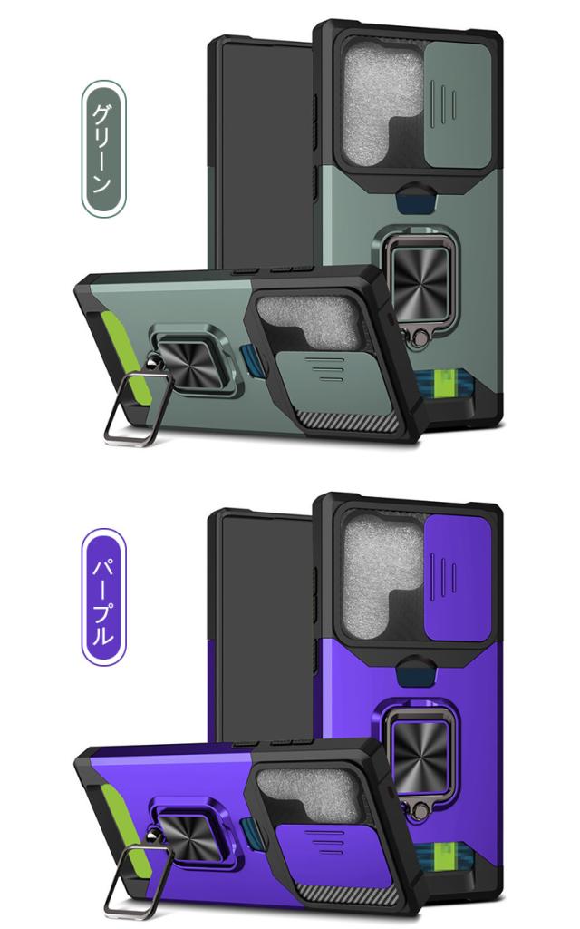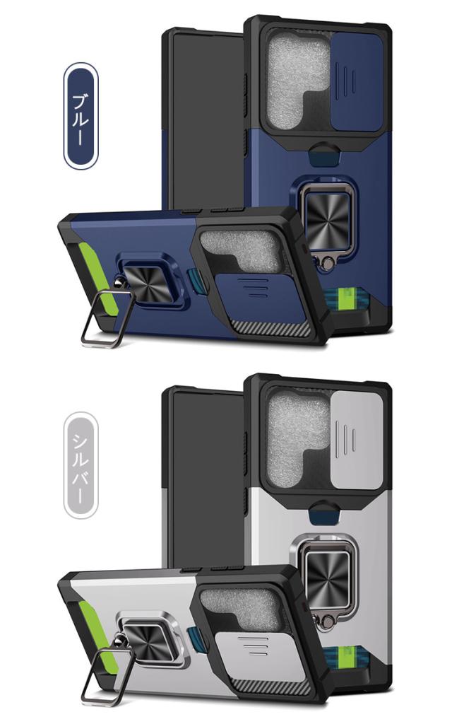 Galaxy S24 ケース S24+/S24 Ultra カバー 耐衝撃 2重構造 一体型スマホリング付き カード収納付き スタンド付き スライド式カメラカバー付き レンズ保護 アンドロイド ケース Samsung サムスン ギャラクシー S24/S24 プラス/S24 ウルトラ スマホカバー