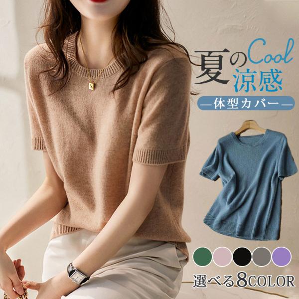 ニットtシャツ tシャツ ニット レディース 半袖 五分袖 ゆったり トップス カットソー サマーニット 春 夏 オフィス カジュアル 大きいサイズ