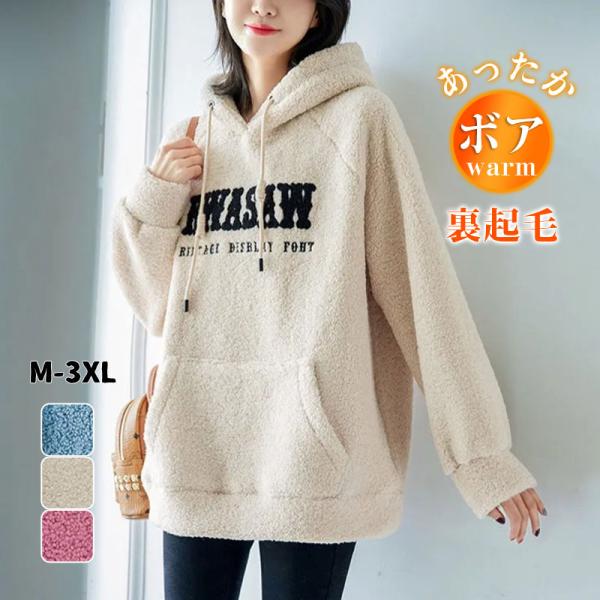 パーカー レディース トレーナー 裏起毛 フード もこもこ 秋冬 アウター スウェット 部屋着 秋コーデ 暖かい 大きいサイズ ゆったり 送料無料