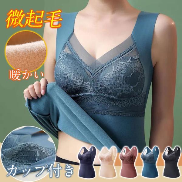 『2点ご購入で200円OFF』タンクトップ 裏起毛タンクトップ 暖かい 極暖 ナイトブラ ノンワイヤーブラ 冬対策 ブラトップ レース 美胸 保温 防寒 秋冬 大きいサイズ