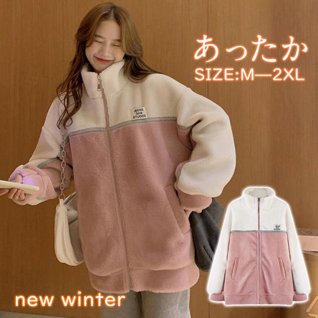 フリースジャケット レディース ボアジャケット アウター 立ち襟 もこもこ 無地 シンプル 厚手 暖か 防寒 秋冬 通勤 あったか ショート丈