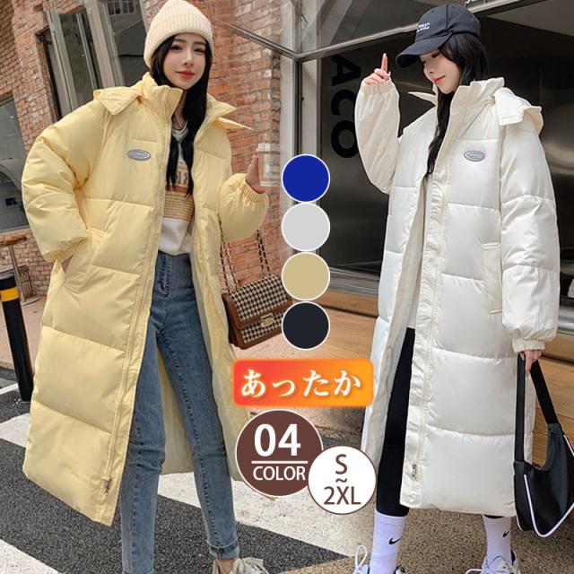 送料無料 中綿コート レディース ダウンジャケット ロングコート 暖かい 厚手 無地 フード付き 防風 防寒 アウター 軽量 カジュアル 可愛い 冬