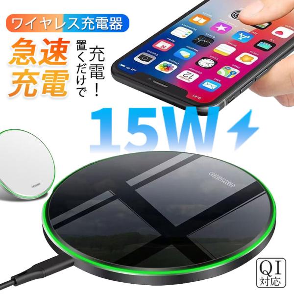 ワイヤレス充電器 iPhone 15 14 充電プレート Andriod 置くだけ 15w 多機種対応 充電器 ワイヤレスチャージャー Qi急速充電