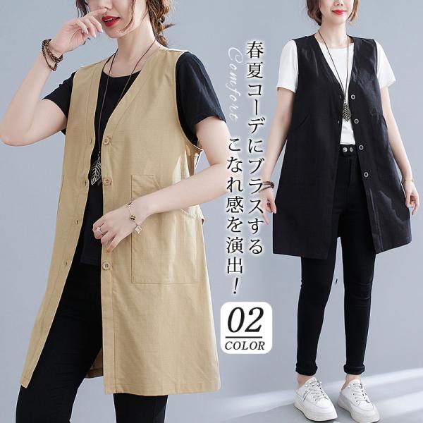 ジレ ベスト レディース トップス ベスト ロング丈 ロングジレ ロング ベスト 無地 アウター サマージャケット ノースリーブ 羽織り オフィス