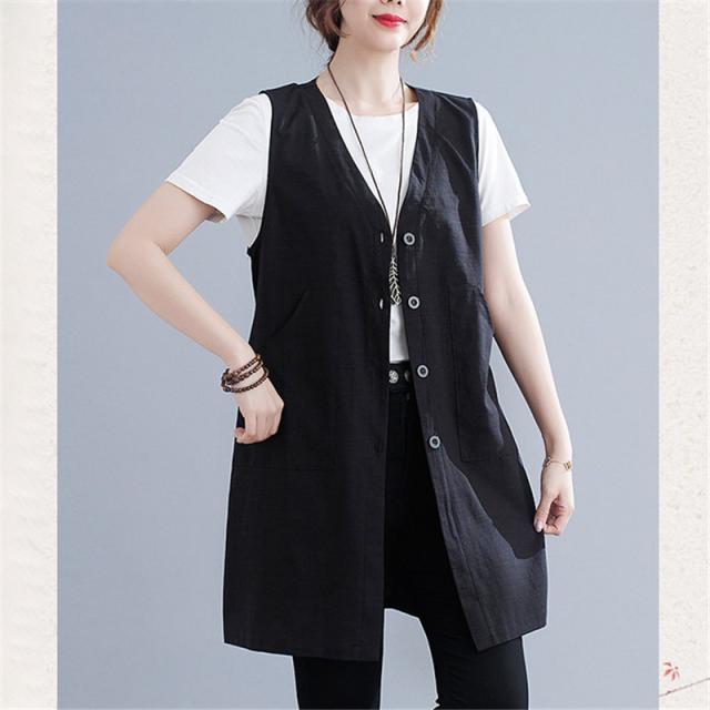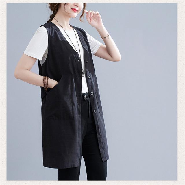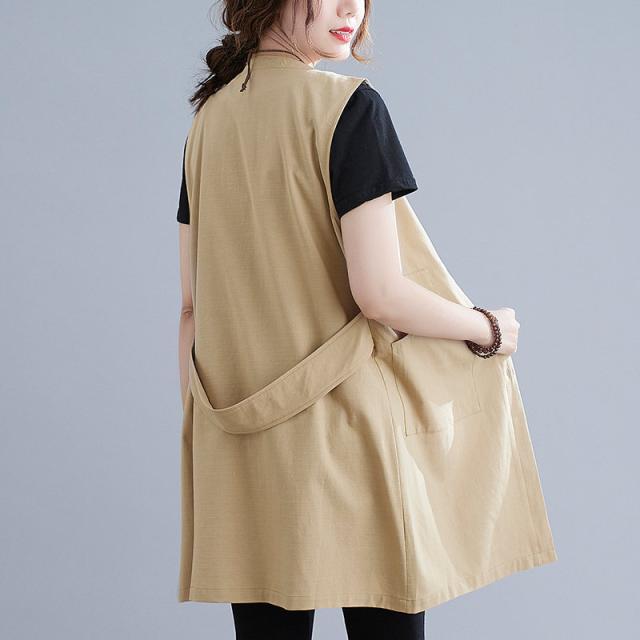 ジレ レディース トップス ロングジレ ベスト ポケット付き ノースリーブ オフィス おしゃれ 着回し ロングジレ着まわせる万能なトップスベスト レディース ノースリーブ ロングジレ リネン 綿麻風 トレンチベスト 無地 ジレンチ トップス ロングベスト ロングコート レディース ジレ 春 秋 大きいサイズ ゆったり 大人 OL 通勤