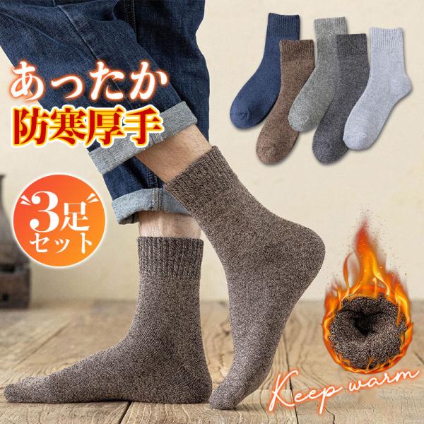 【3足セット】靴下 ソックス 暖かい メンズ くつした ビジネス ルームソックス 厚手 裏起毛 防寒対策 あったか 冬 冷え対策 アウトドア 送料無料