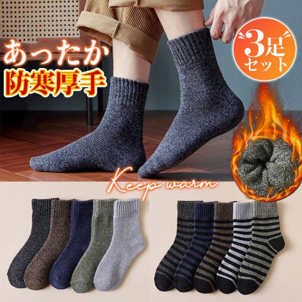 【3足セット】靴下 ソックス 暖かい メンズ くつした ルームソックス 厚手 裏起毛 防寒対策 あったか 冬 冷え対策 アウトドア ぽかぽか 送料無料