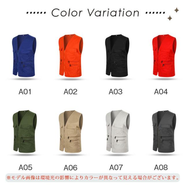 【2点ご購入で300円OFF】ベスト メンズ 春 夏 お釣りベスト 作業着 農業 仕事 薄手 カラー 機能性 サマーベスト アウトドア カジュアル 登山 前開き 父の日