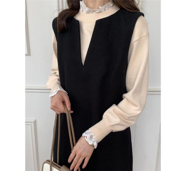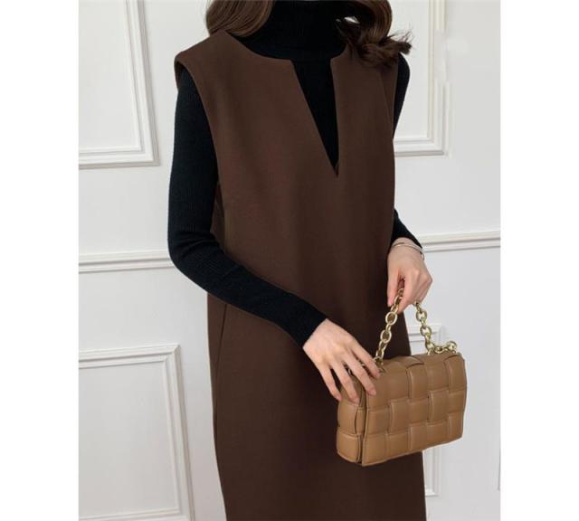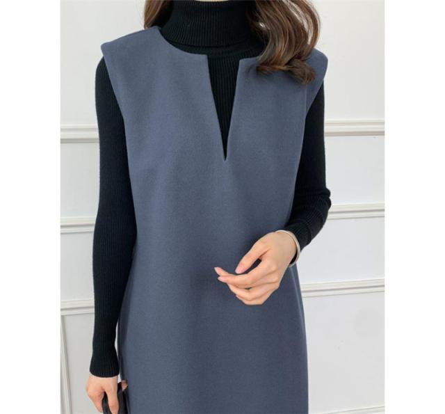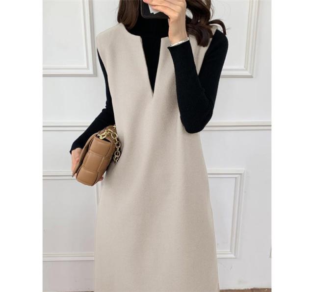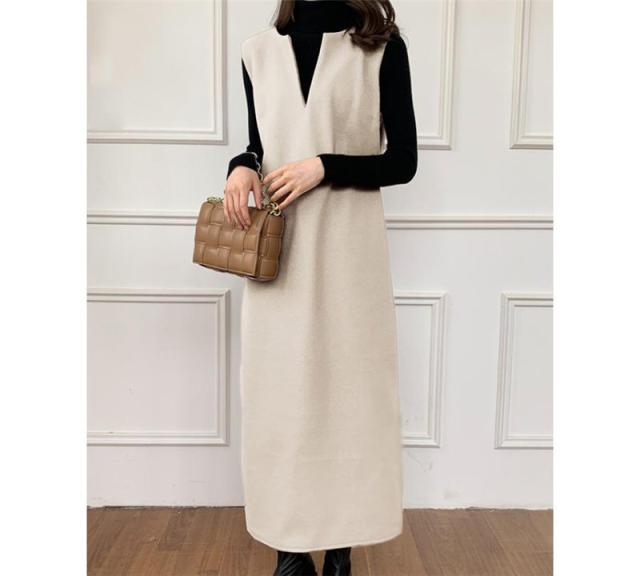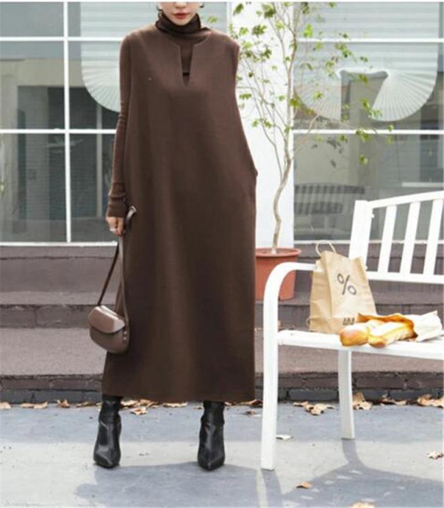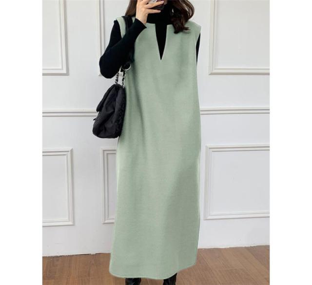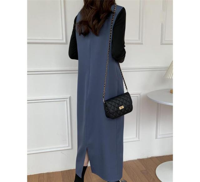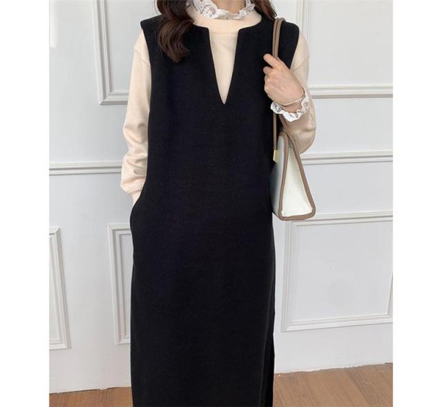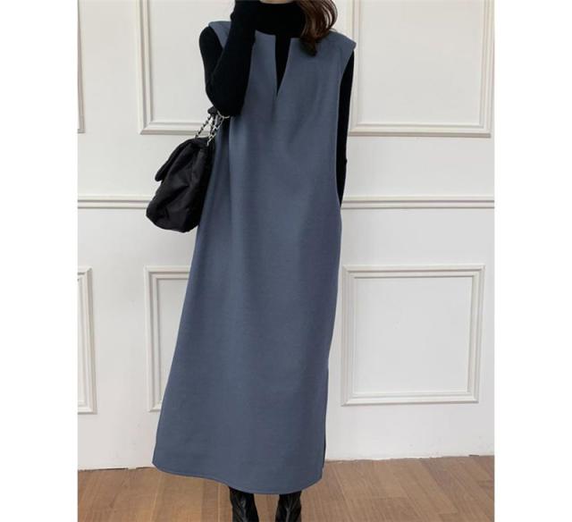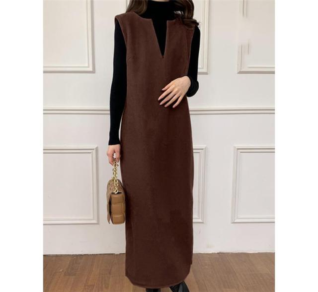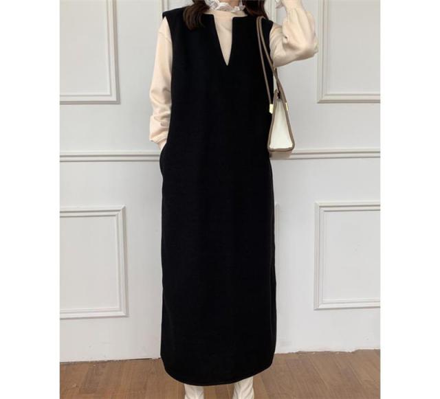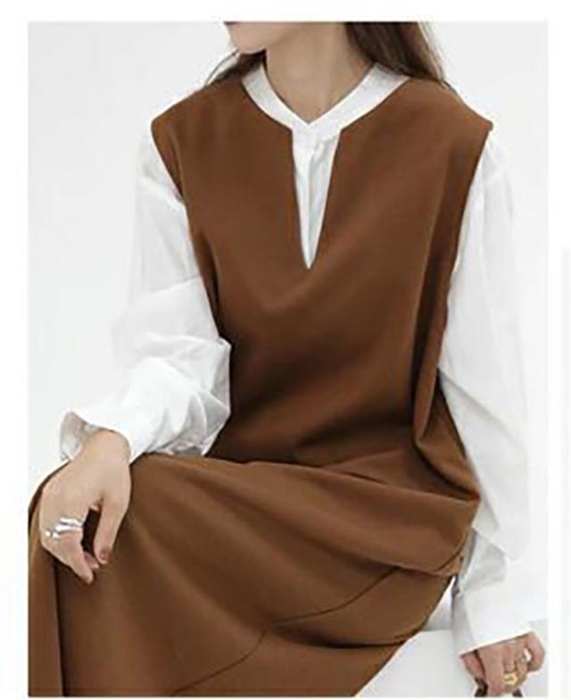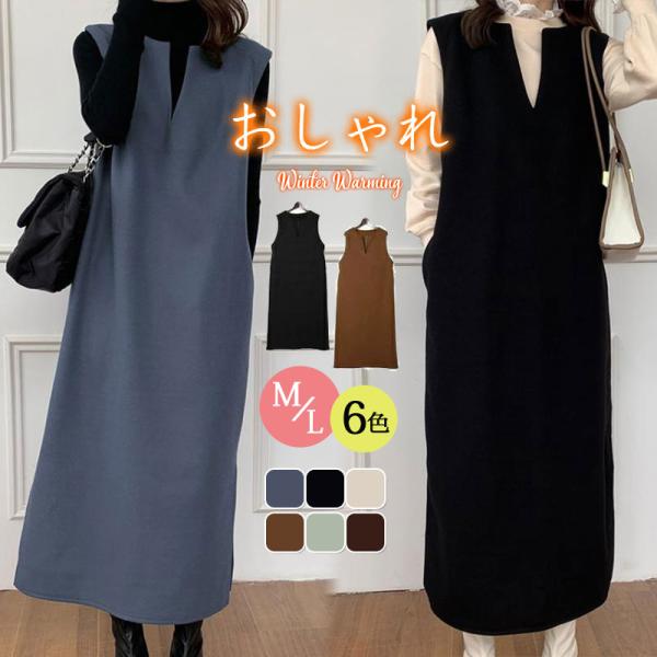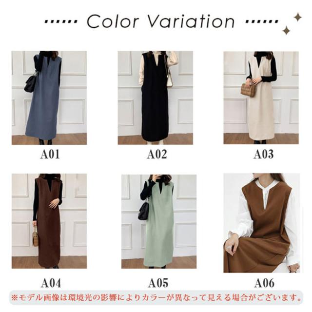 ワンピース ジャンパースカート レディース ジャンスカ 深Vネック ロングワンピース Vネック スリット入り おしゃれ 可愛い 体型カバー 送料無料