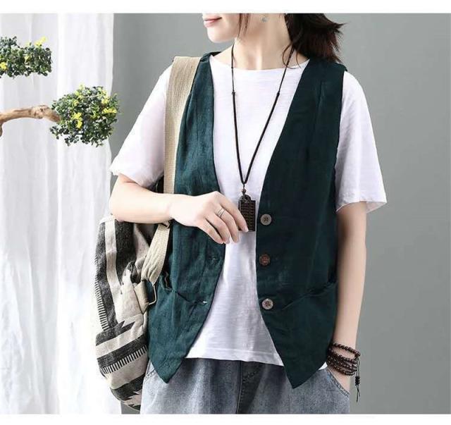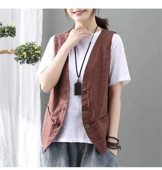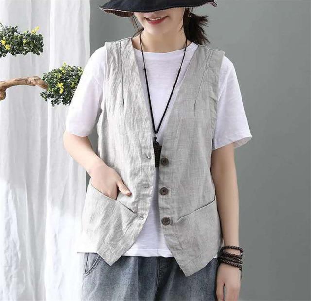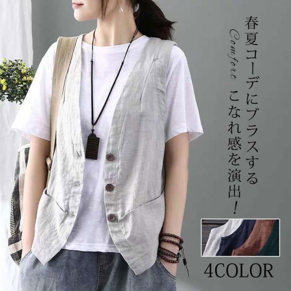 ジレ レディース ベスト 夏 春夏 綿麻風 サマーベスト ジレベスト おしゃれ 夏ベスト 薄手 前開き トップス ゆったり 大きいサイズ ノースリーブ