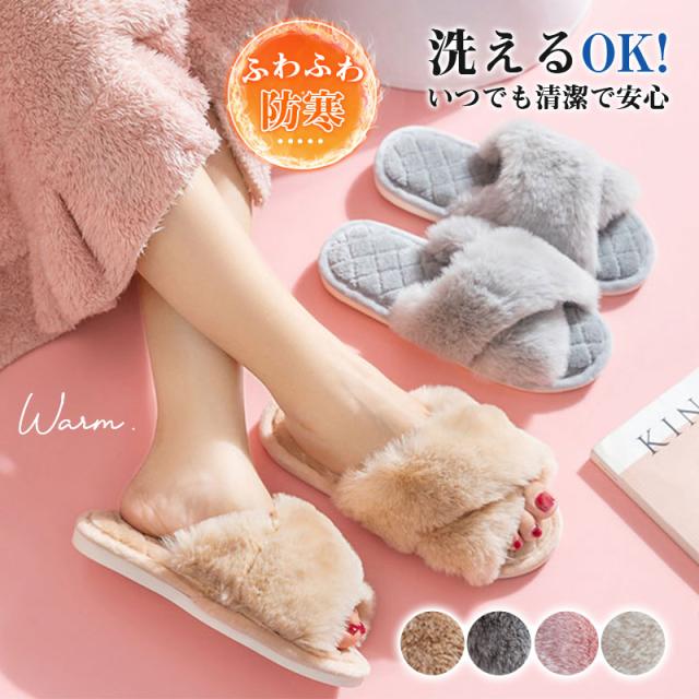 送料無料 スリッパ レディース 暖かい ふわふわ かわいい ルームスリッパ 洗える ルームシューズ おしゃれ 防寒 オフィス 室内履き 来客用 冬用