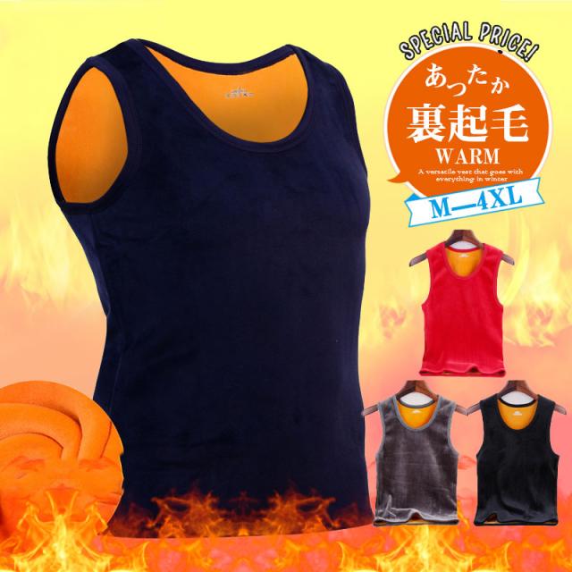 <2枚購入809円/枚!3枚購入764円/枚> タンクトップ メンズ 裏起毛 トップス ノースリーブ カットソー あったか 下着 暖かい 防寒 冬対策