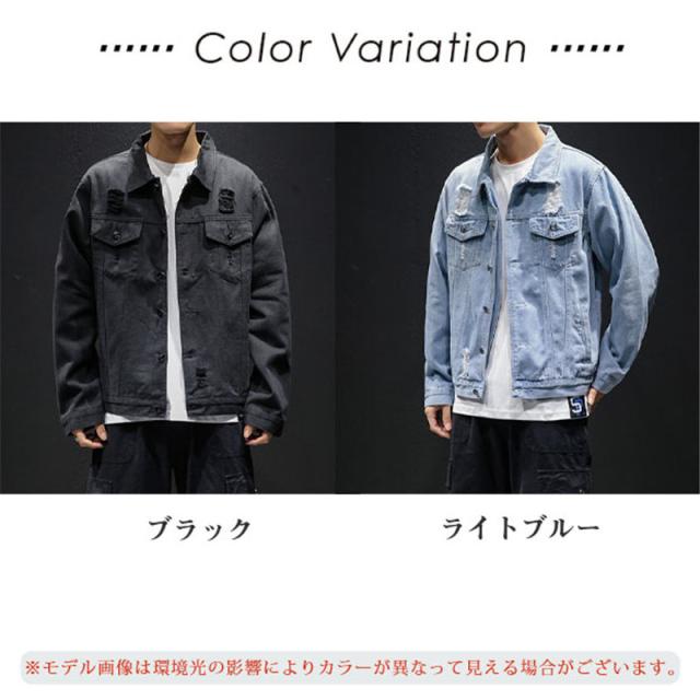 デニムジャケット メンズ ジャケット Gジャン アウター ダメージ加工 長袖 カジュアル ブルゾン 春秋服 大きいサイズ お兄系 お洒落 かっこいい