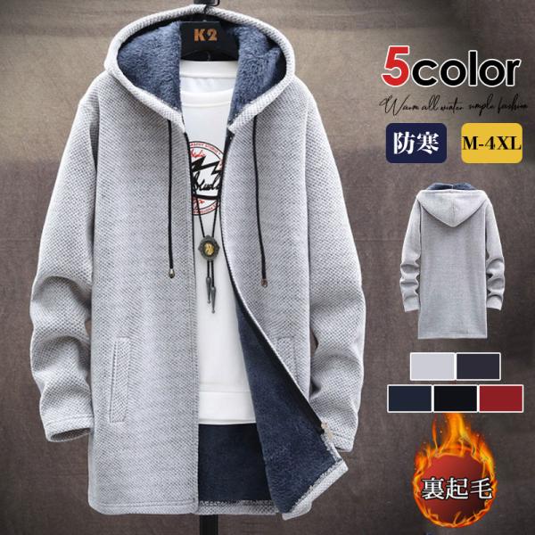 カーディガン ロング丈 裏起毛パーカー メンズ 暖かい スウェットパーカー 裏起毛 長袖 ニット パーカー 冬 トップス 暖かい お出かけ 無地