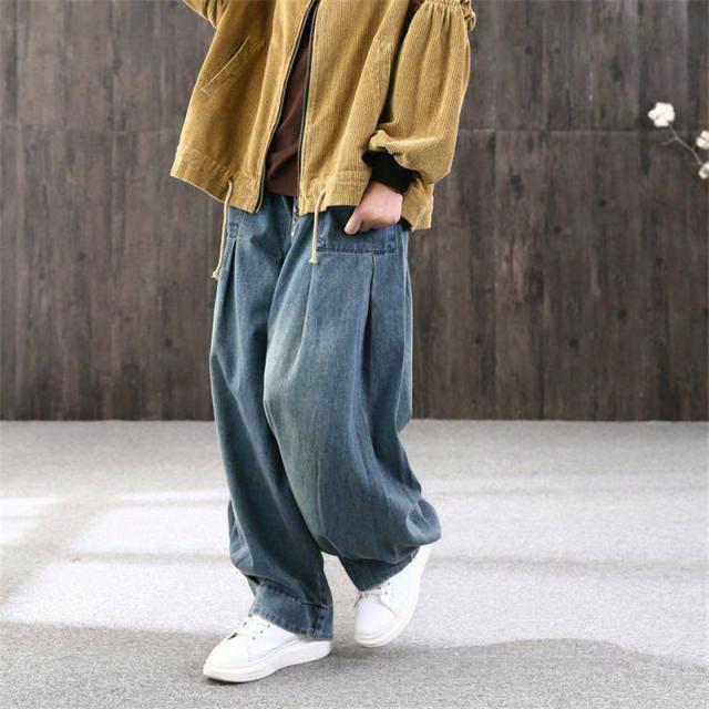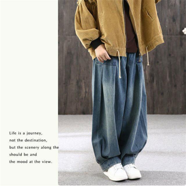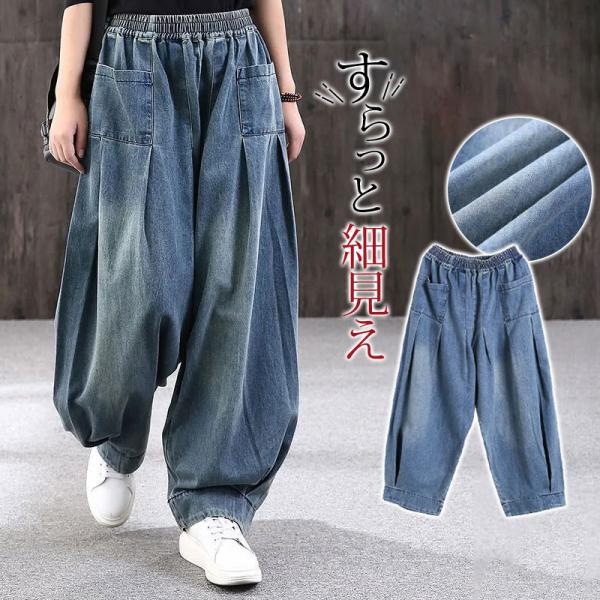 ワイドパンツ デニム レディース サルエルパンツ ズボン ボトムス ハイウエスト ロング丈 カシュアル 体型カバー ゆったり 美脚 春秋 細身