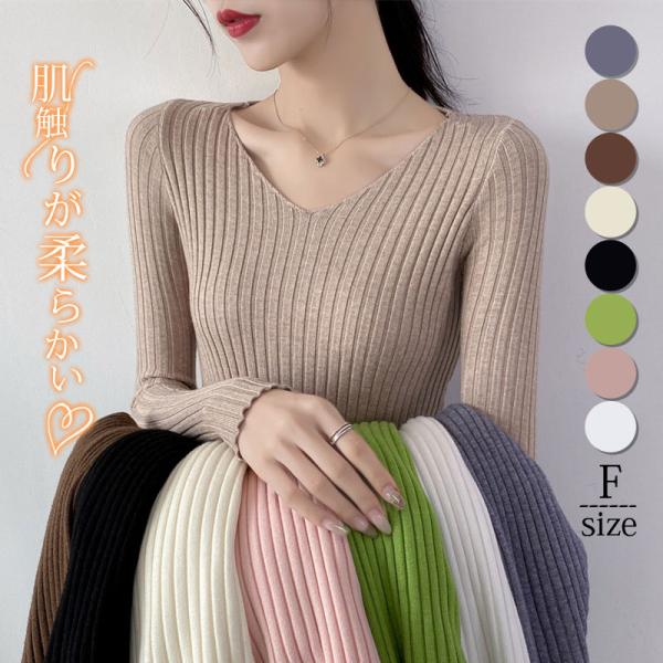 ニット セーター レディース Vネック トップス リブセーター 長袖 伸縮性 暖か スリム 着痩せ おしゃれ 秋 冬 秋コーデ カジュアル 送料無料