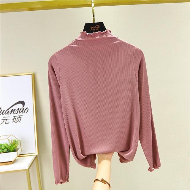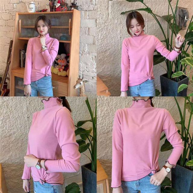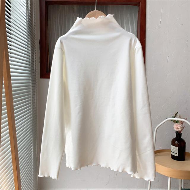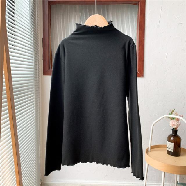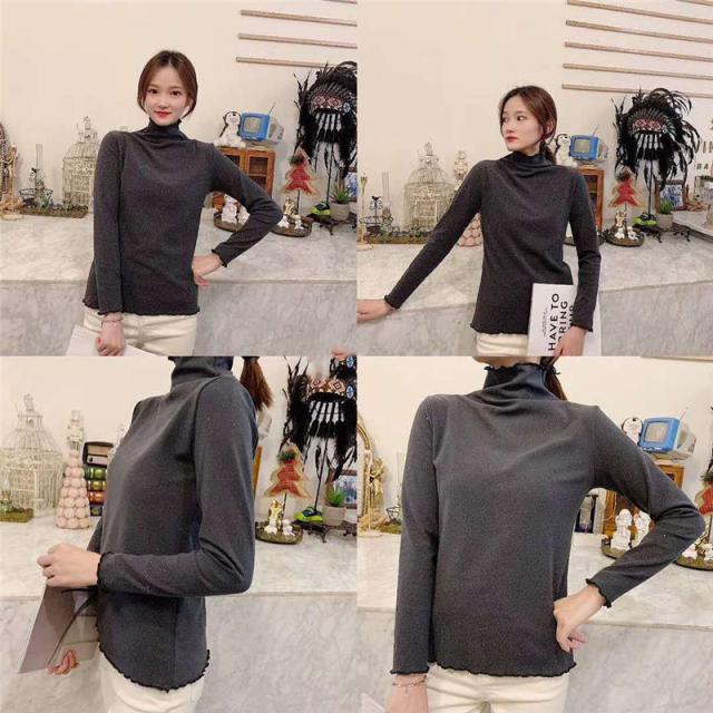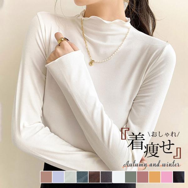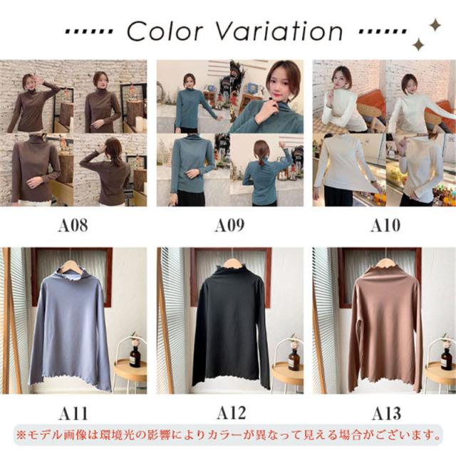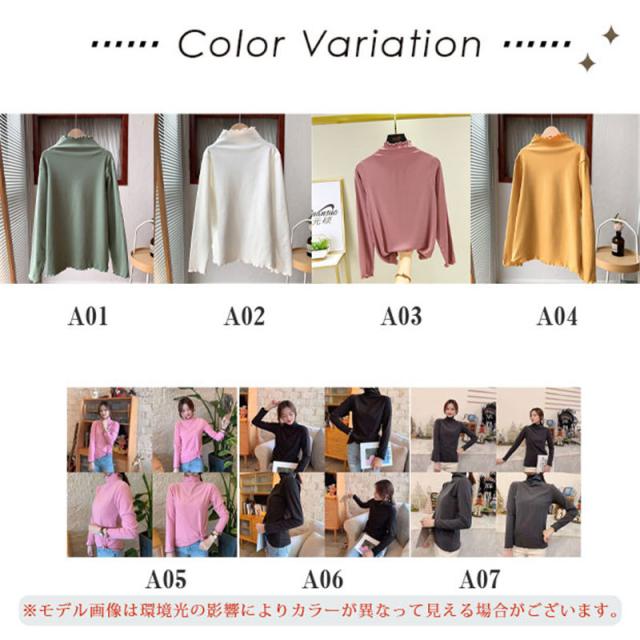 【一部即納】カットソー 長袖 フリル プルオーバー レディース タートルネック 着痩せ Tシャツ 可愛い インナー トップス シンプル 重ね着 おしゃれ 送料無料