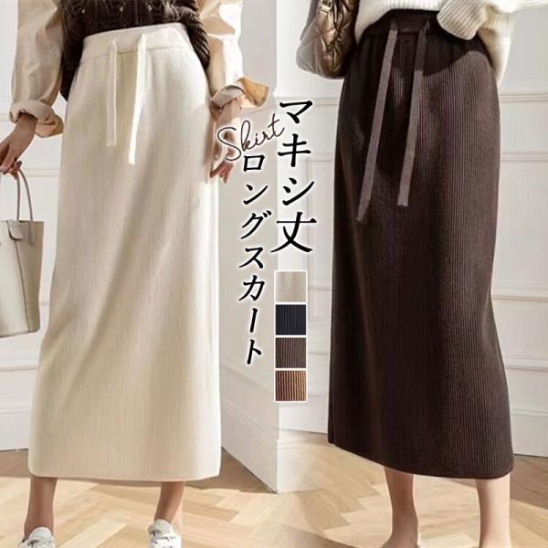 スカート レディース 大人 カジュアル スリム ロング丈 シンプル 無地 きれいめ 無地 防寒 膝下 細見せ 着痩せ おしゃれ ゆったり 体型カバー