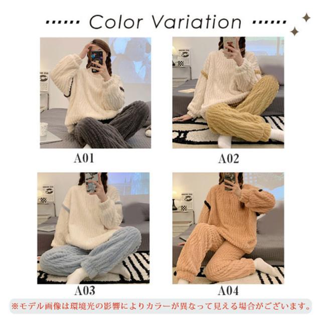 パジャマ ルームウェア レディース 前開き 寝巻き 秋 冬 長袖 寝巻き 防寒 上下セット 部屋着 かわいい カジュアル もこもこ あったか おしゃれ