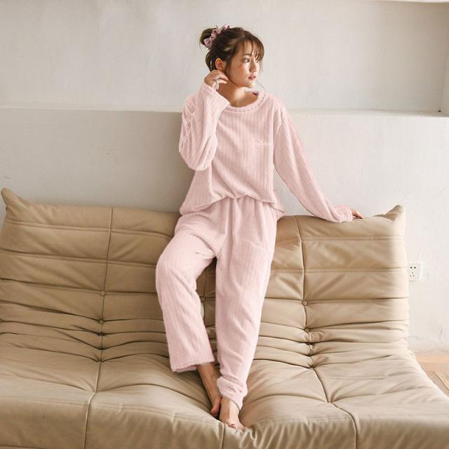 【一部即納】パジャマ ルームウェア レディース 寝巻き 秋 冬 長袖 寝巻き 防寒 上下セット 部屋着 かわいい カジュアル もこもこ あったか 送料無料