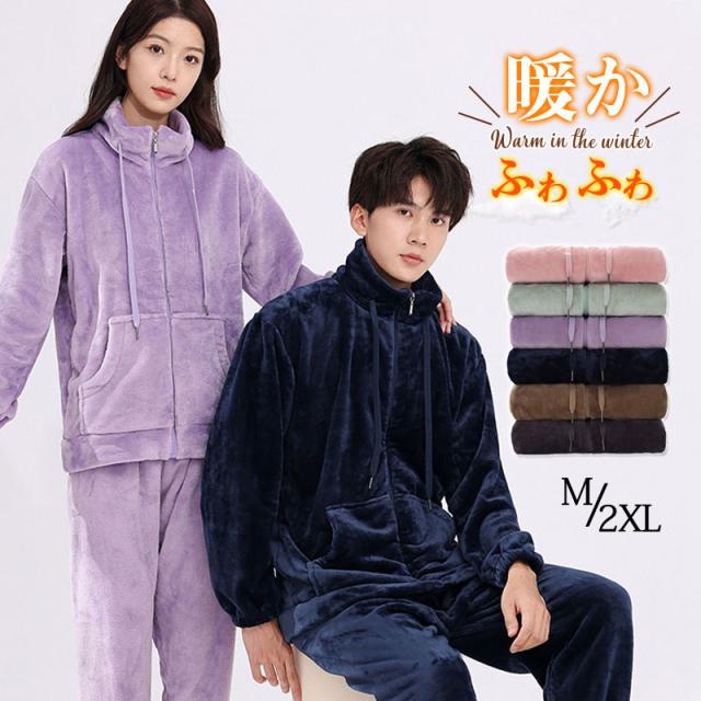 パジャマ レディース メンズ 冬 カップル 長袖 ルームウェア 上下セット ペアルック 可愛い ふわふわ あったかい 厚手 部屋着 寝巻 送料無料