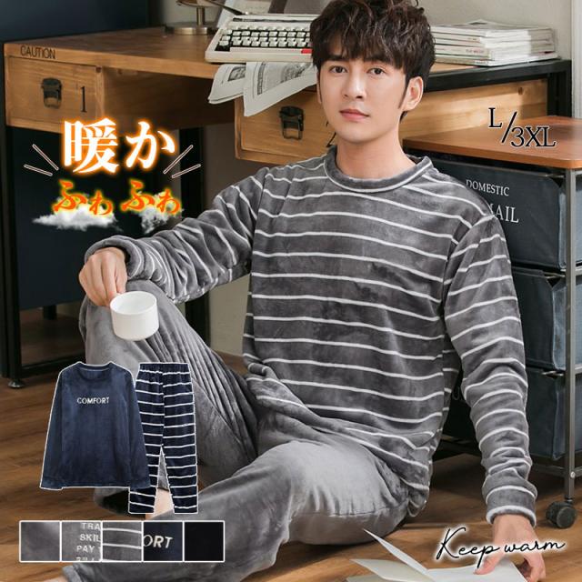パジャマ レディース メンズ 冬 ボーダー柄 カップル 長袖 ルームウェア 上下セット 可愛い ふわふわ あったかい 厚手 部屋着 寝巻 送料無料